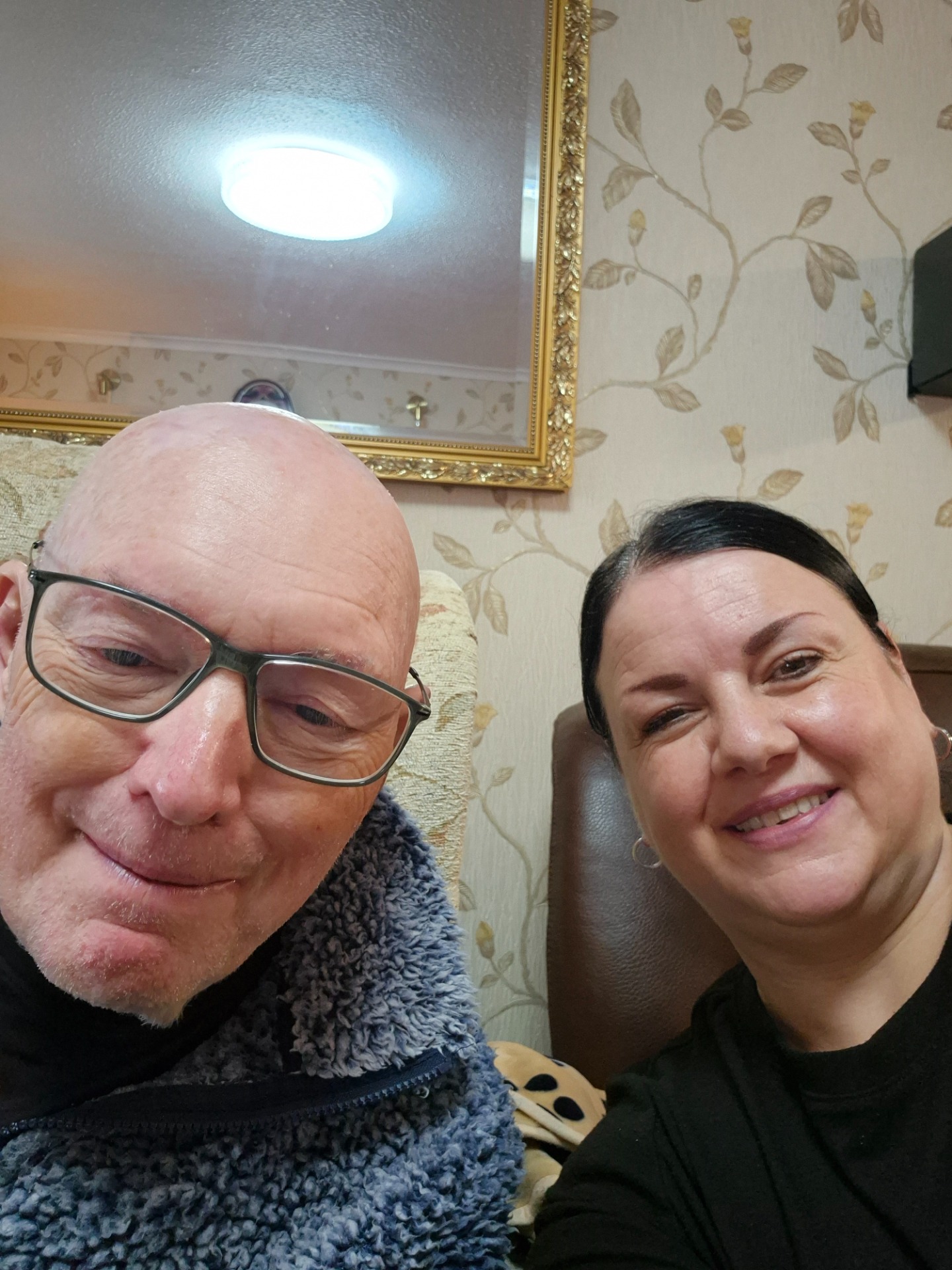 My lovely client. Enjoying our catch up with a coffee, after personal care. Looking forward to doing extra with hubby to do exercises soon ❤️