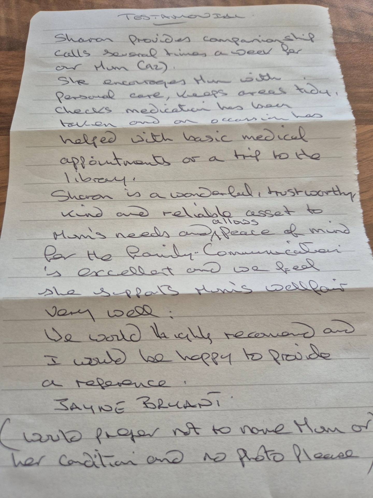 Another great testimonial. Wishes mum to remain private. Wishes and preferences granted,but happy to provide a reference and Testimonial see below. ❤️